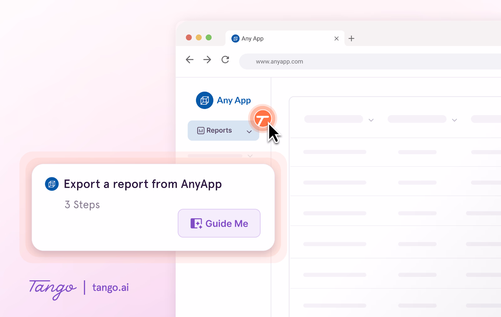 Instead of static SOPs or videos that become outdated as soon as you share them, Tango automatically captures workflows and turns them into step-by-step guides that anyone can follow, right inside the tools they need to learn.