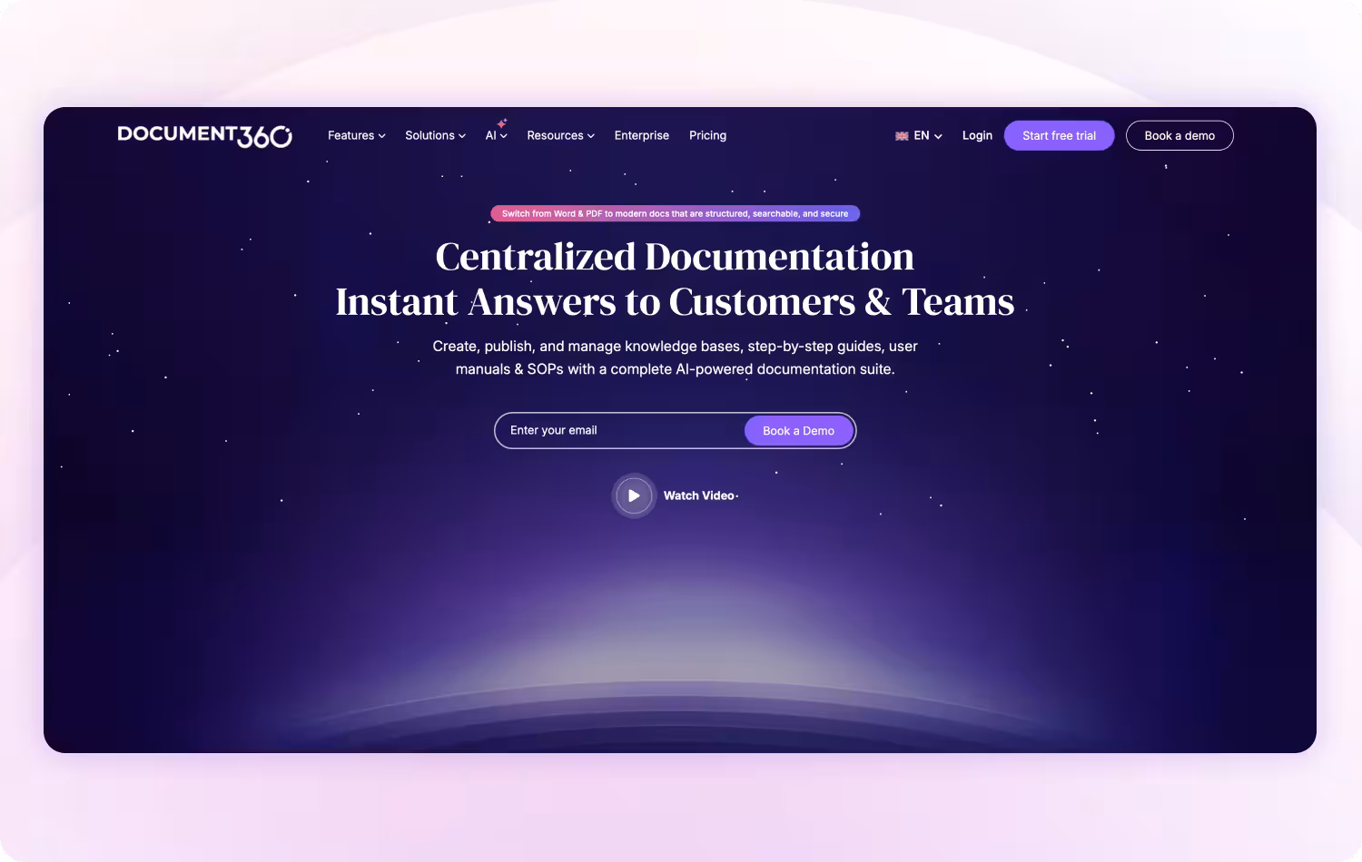 Document360 is a knowledge base platform designed for creating and managing large documentation libraries.