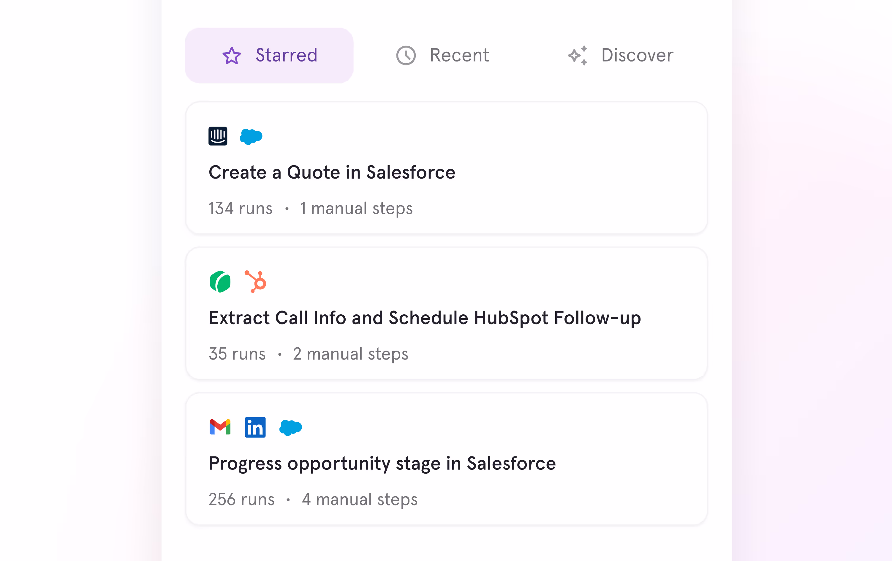 Never memorize another 50-step CRM procedure again. Tango handles the gruntwork so customer teams can focus mental energy on customers, product, and competitors.