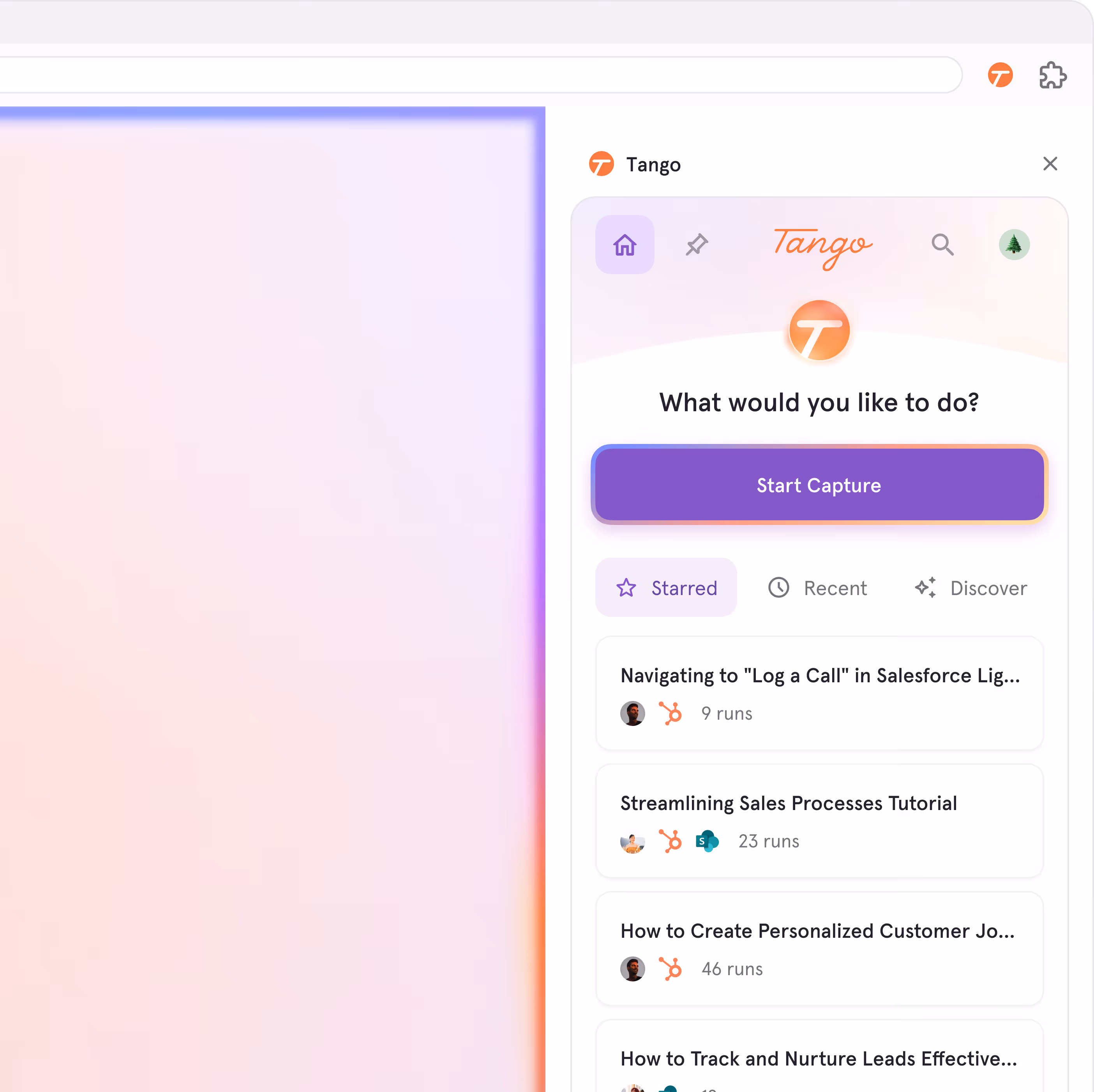 Click through your key processes once. Tango turns it into training guides automatically with screenshots, titles, and text.